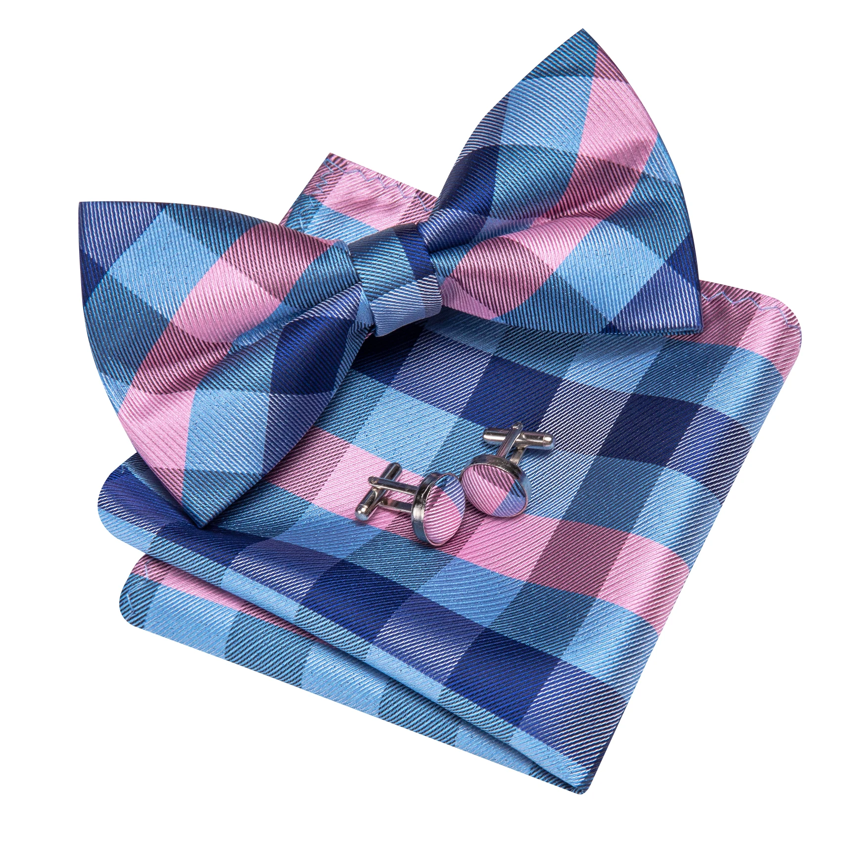 Barry.Wang Geometric Floral Jacquard Mens Bow Tie Hanky Cufflinks Set Pre-Tied Bowtie Gold Red Pink Purple Wedding Business