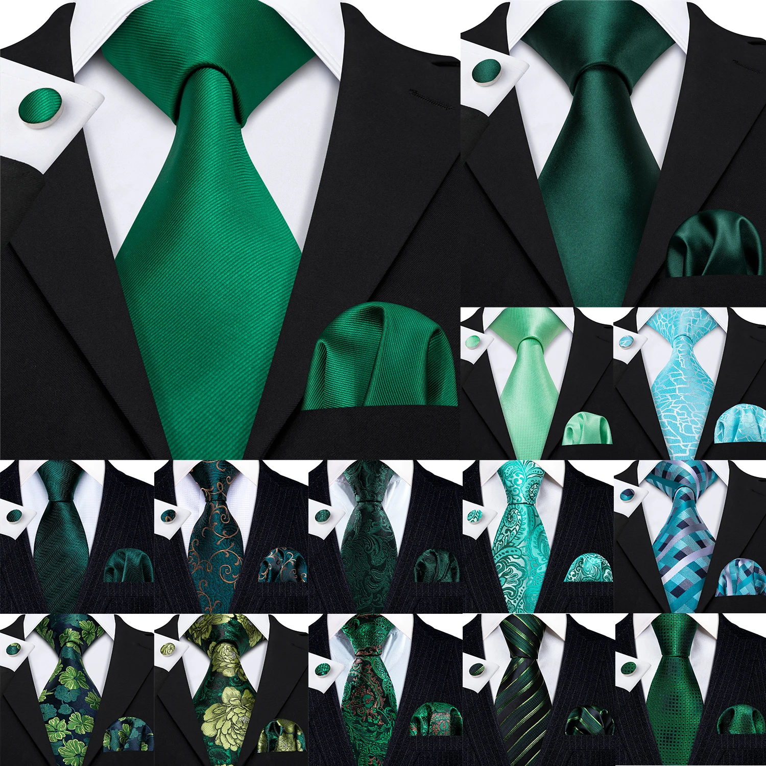 Barry.Wang Green Silk Mens Tie Hanky Cufflinks Set Mint Grass Teal Bottle Sage Pea Green Necktie For Male Wedding Business Party