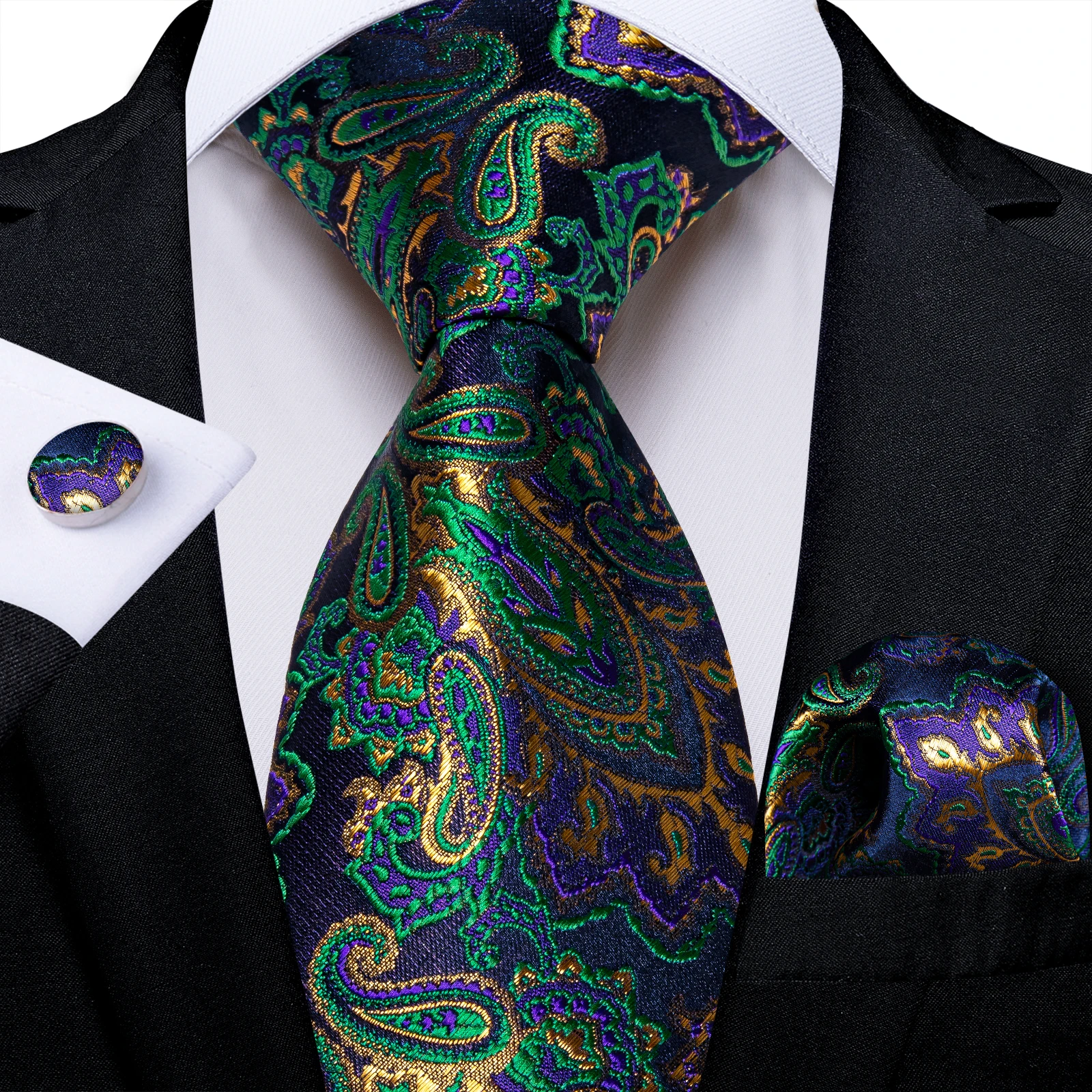 Green Golden Paisley Ties for Men Luxury Wedding Party Prom Men's Suits Accessories Necktie Pocket Suqare Cufflinks Husband Gift  Read more