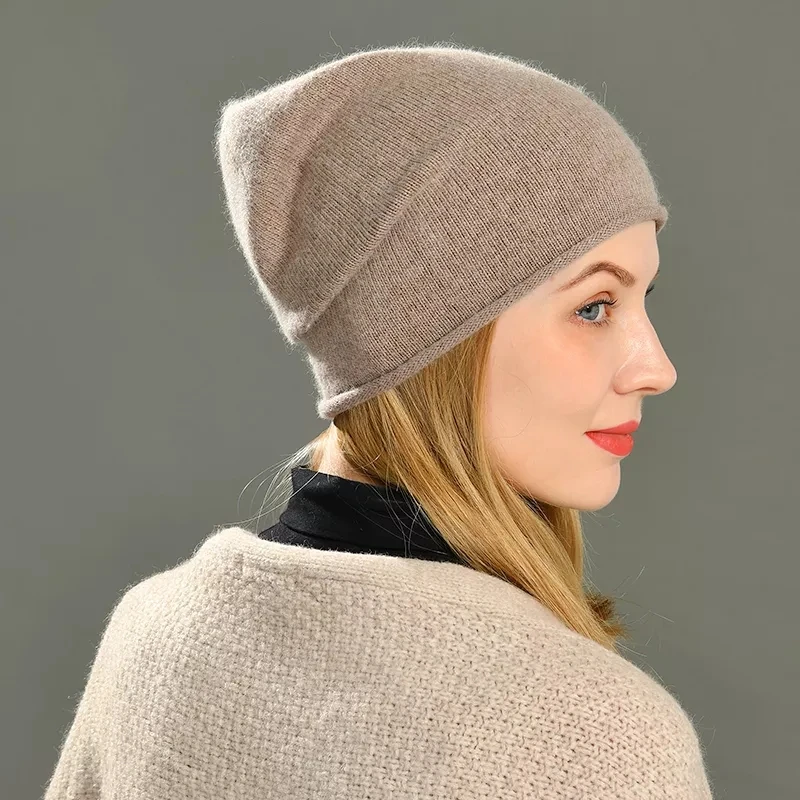Jaxmonoy Autumn Knitted Thin Beanie Hat Women Cashmere Crimping Hem Cap Solid Color Casual Simple Girl Bonnet Fashion Female Hat