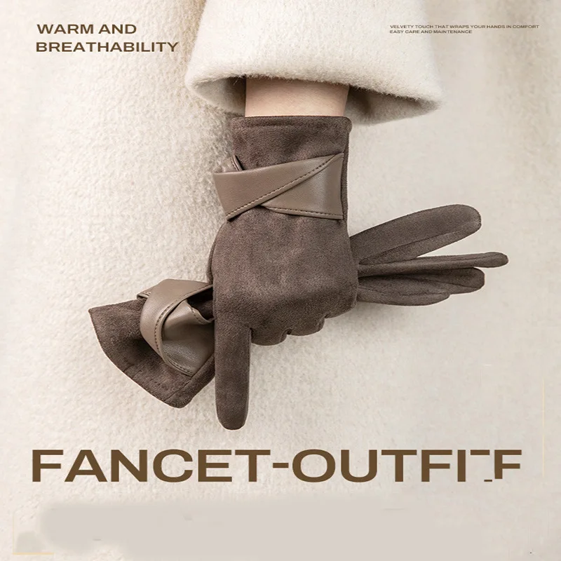 1Pair Suede Gloves For Women Winter Velvet Gloves Elegant Touch Screen Gloves Riding Driving Keep Warm Mountaineering Gloves