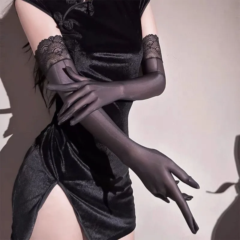 51CM Oily Smooth Soft Sexy Lace Tight Thin Women Long Gloves Fashionable Personality Temptation Stage Performance Cosplay
