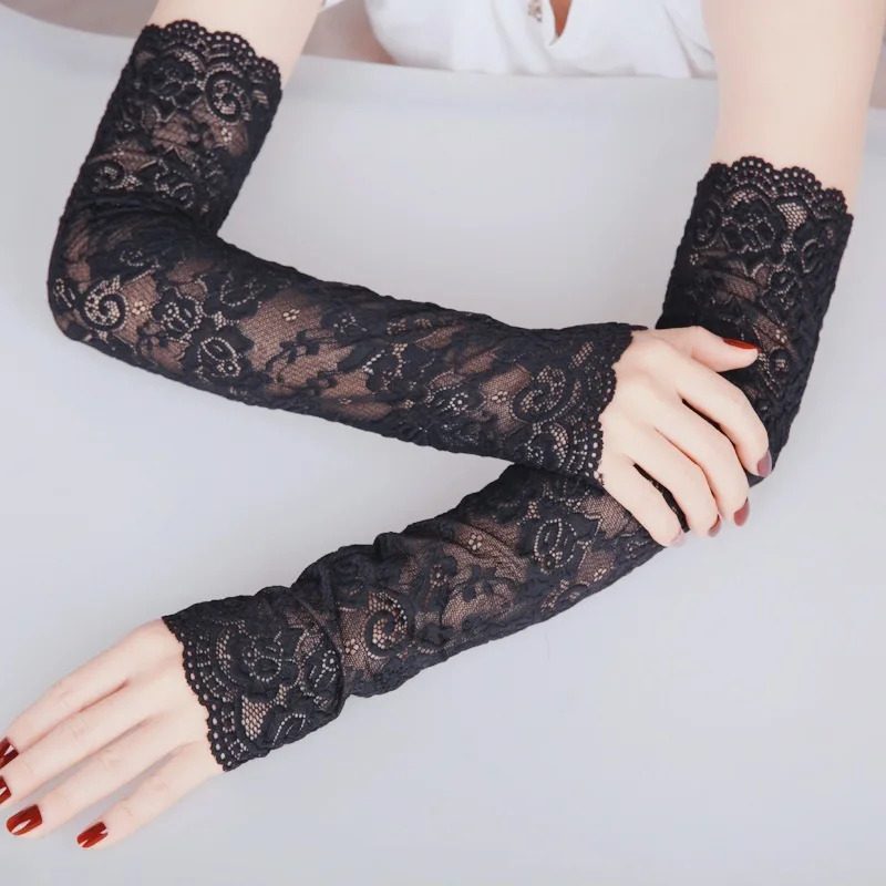 Sexy Dress Party Lace Glove Women Solid Floral Print Fingerless Gloves Stretch Arm Elbow Sleeves Gloves Summer Sunscreen Mittens