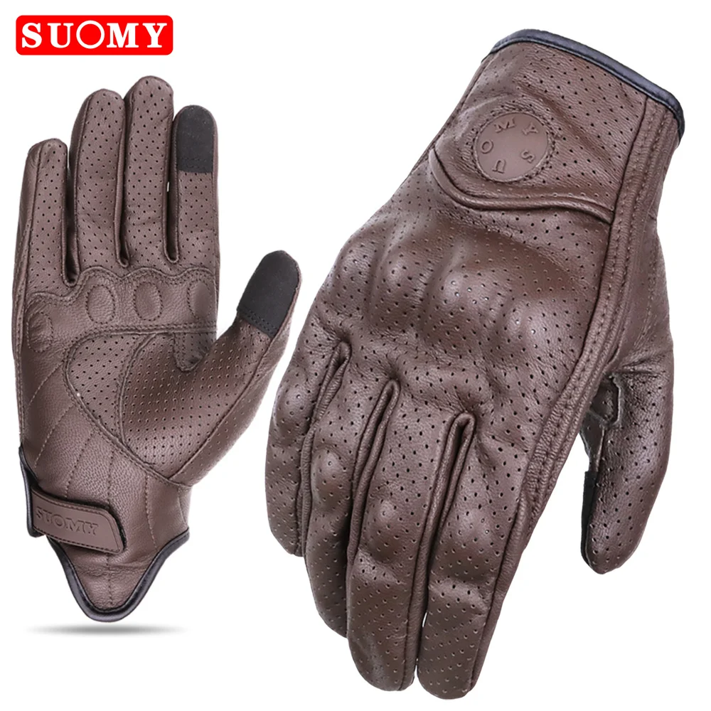 SUOMY Leather Motorcycle Gloves Vintage Men Women Moto Cycling Spring Gloves Retro Motorbike Motorcross ATV Motor Gloves Brown