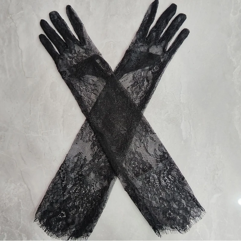 Fairy Black Lace Floral Bridal Wedding Gloves Lady Elegant Thin Long sexy gloves Evening Party NightClub Accessories Sheer Glove