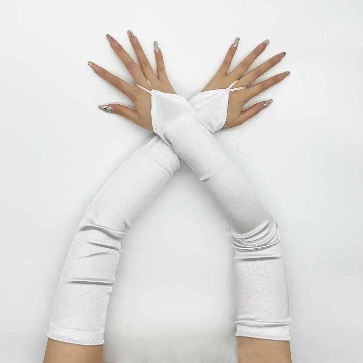 1 Pair Women Adult Black White Red Skin Opera/Elbow/Wrist Stretch Satin Finger Long Gloves Women Flapper Gloves Matching Costume