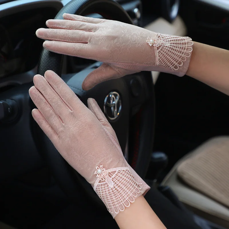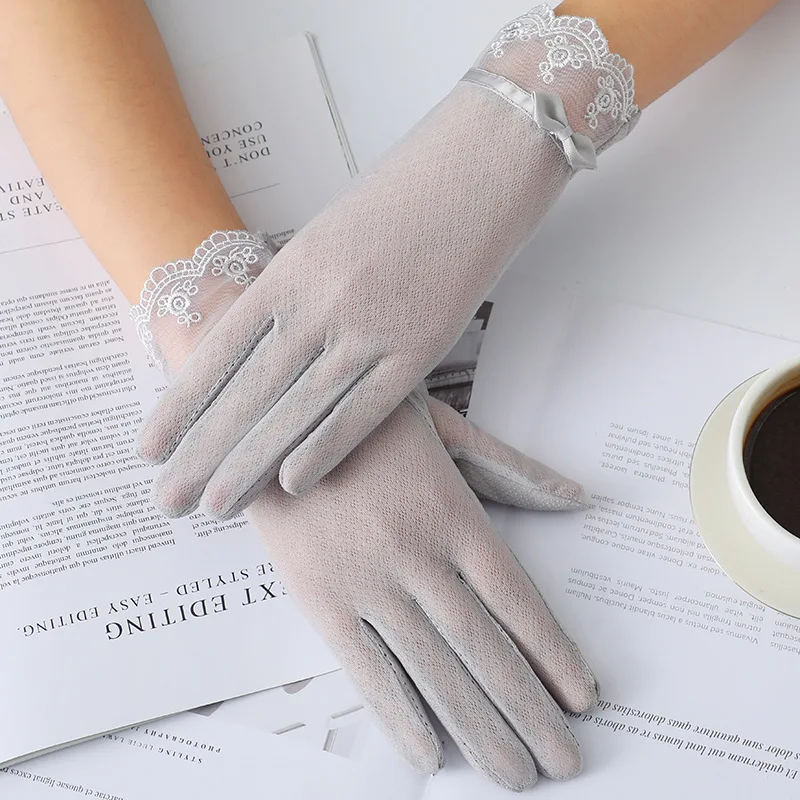 Summer Women Sexy Lace Thin Sunscreen Touch Screen Gloves Soft Ice Silk Skid Driving Anti-UV Elegant Female Outdoor Gloves