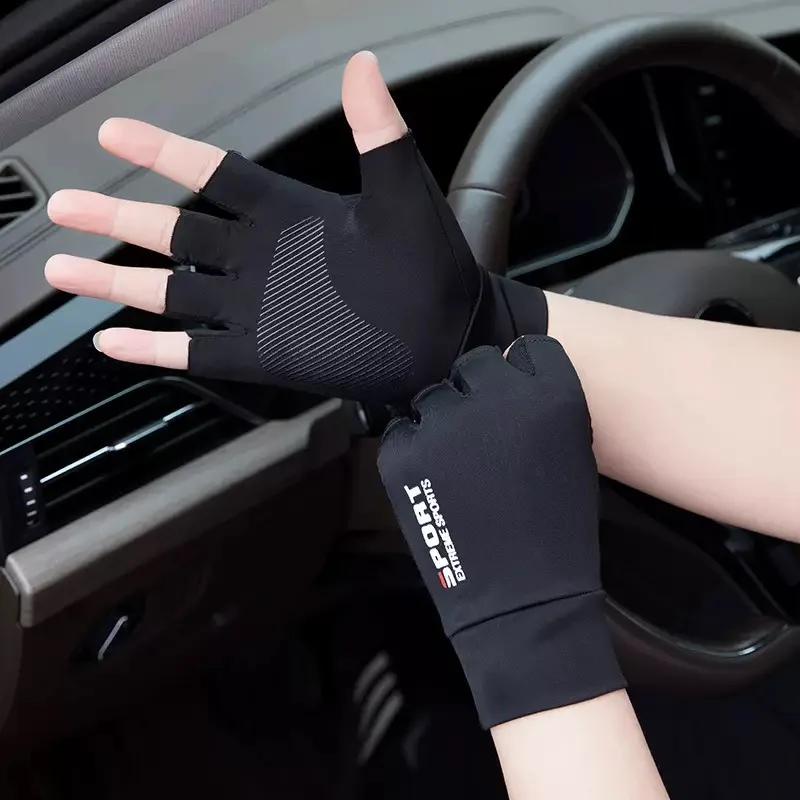Ice Silk Halffinger Cycling Gloves for Men and Women Outdoor Sports Fitness Driving Fishing Highelastic Comfortable