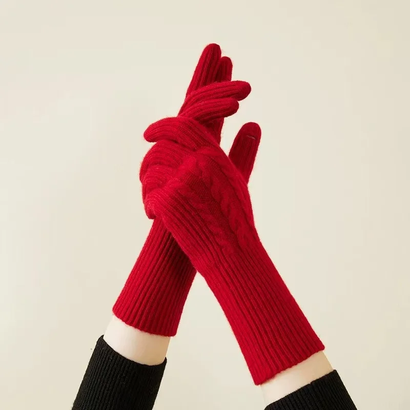 Women Cashmere Knitted Gloves Autumn Hand Warmer Winter Thicken Lining Full Fingered Mittens Skiing Short Wrist Gloves Warm