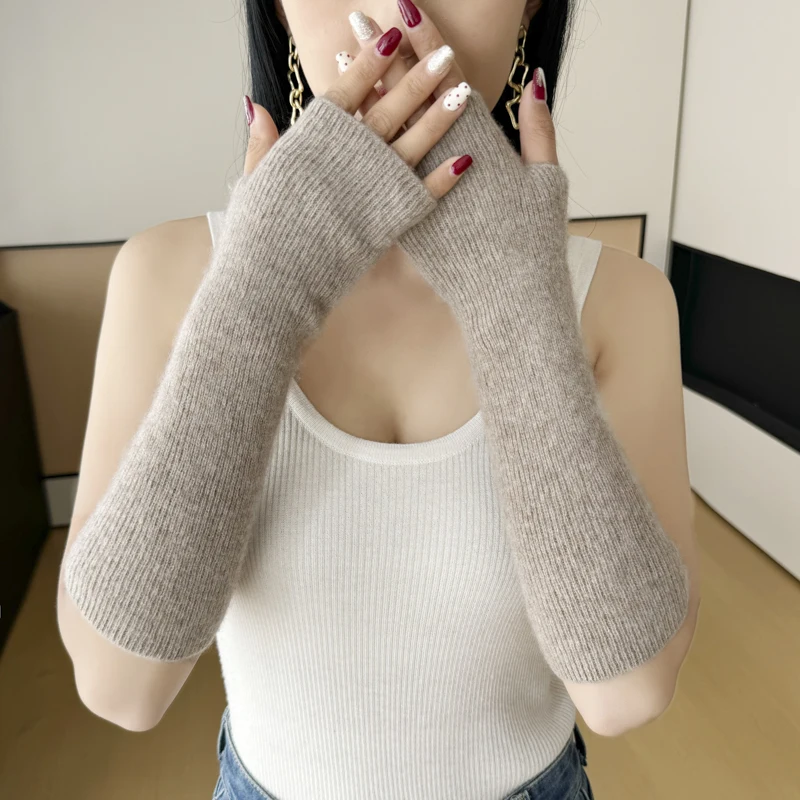 MVLYFLRT Women's High-Quality Cashmere Arm Sleeves Knitted Warm Gloves Cozy Sleeve Covers for Cold Weather Half Finger Gloves