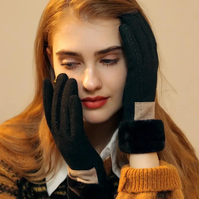 Women's Thermal Gloves Touchscreen Cashmere Gloves Winter Windproof Outdoor Wool Warm Gloves