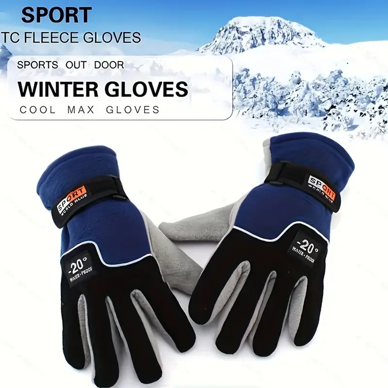 1 Pair Full Finger Fleece Gloves Men's and Women's Winter Outdoor Windproof Warm Gloves Suitable for Riding, Fishing, Skiing