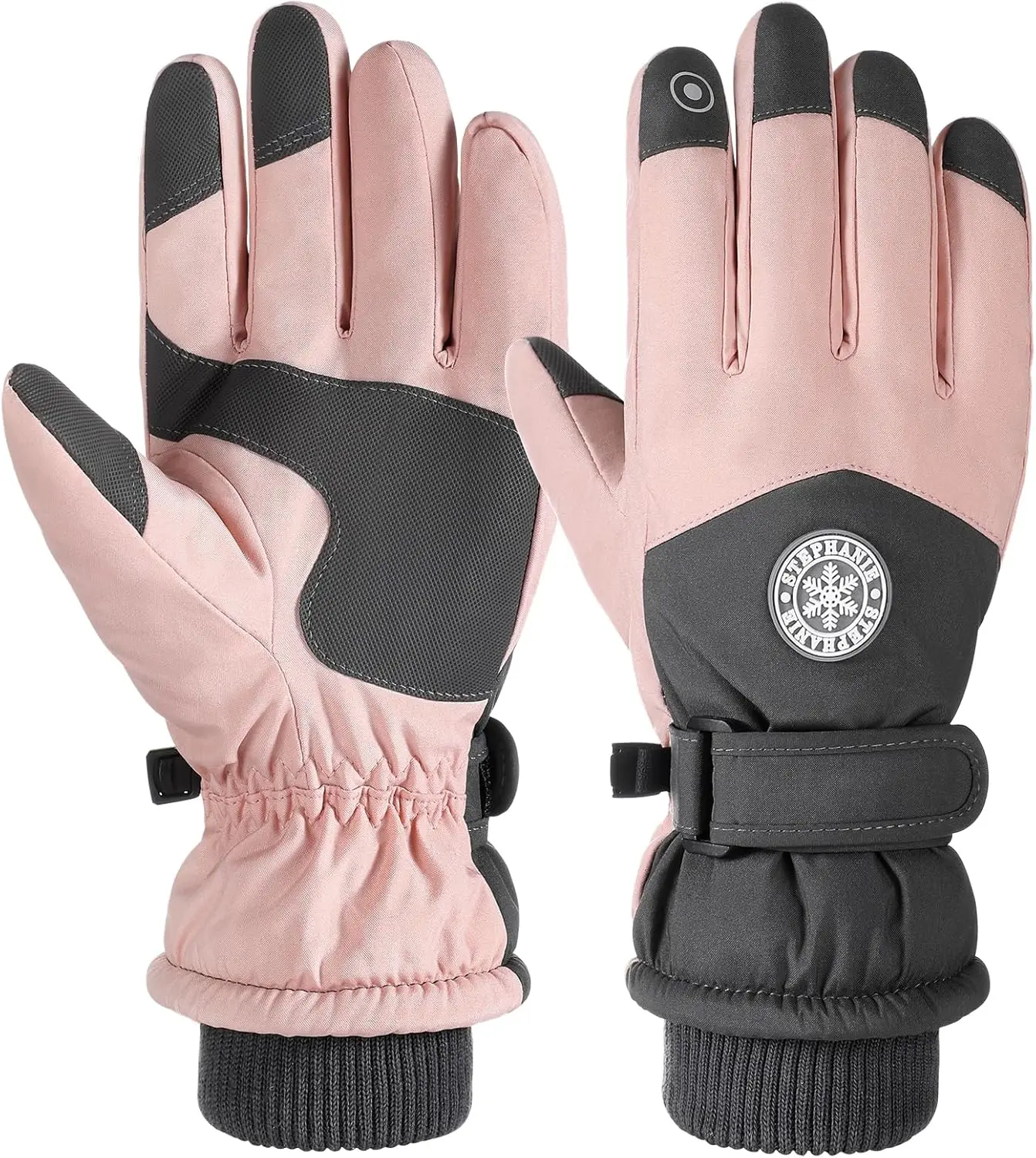 Women's Winter Thickened Fleece Thermal Cotton Waterproof Touchscreen Gloves, Ski Gloves, Cold and Wind Resistant
