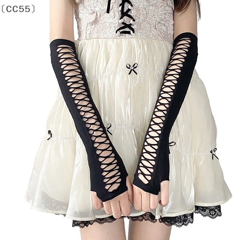 〔CC55〕Women Elbow Length Punk Gloves Sexy Lace Long Mittens Cutout Cross Mesh Gloves Evening Party Dance Entertainment Wear