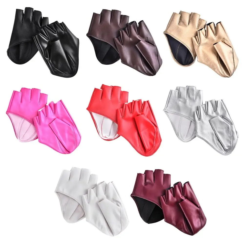 Stage Performance Leather Women Man Half-Finger Rivet Gloves Nightclub Dance Fashion Personality Punk Hip-Hop