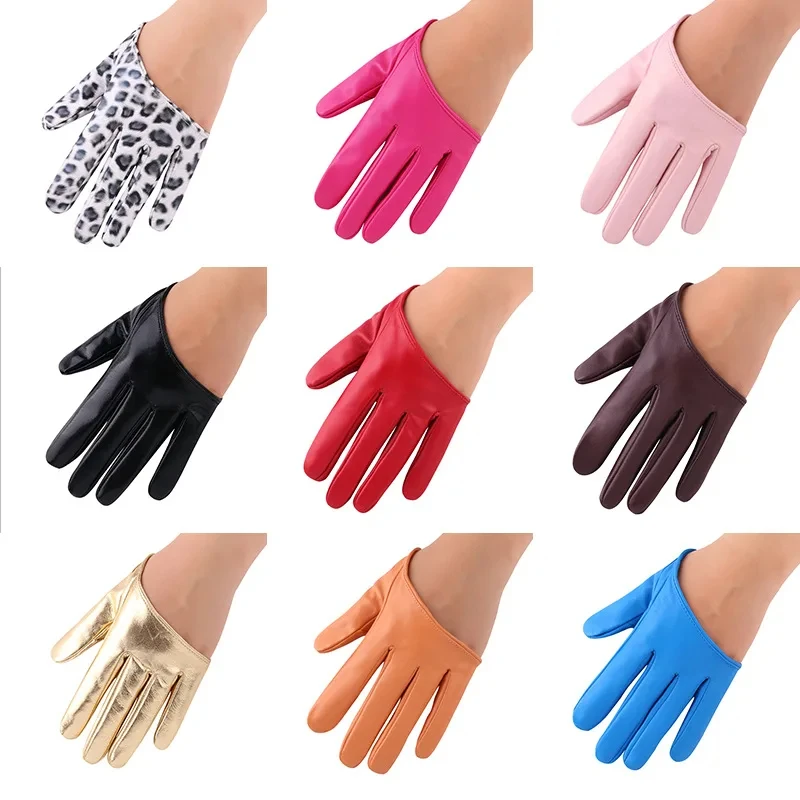 13 Color Women Stage Performance Nightclub Punk Leather Half Finger Gloves Pole Dance Personality Hip Hop Queen Leopard Print
