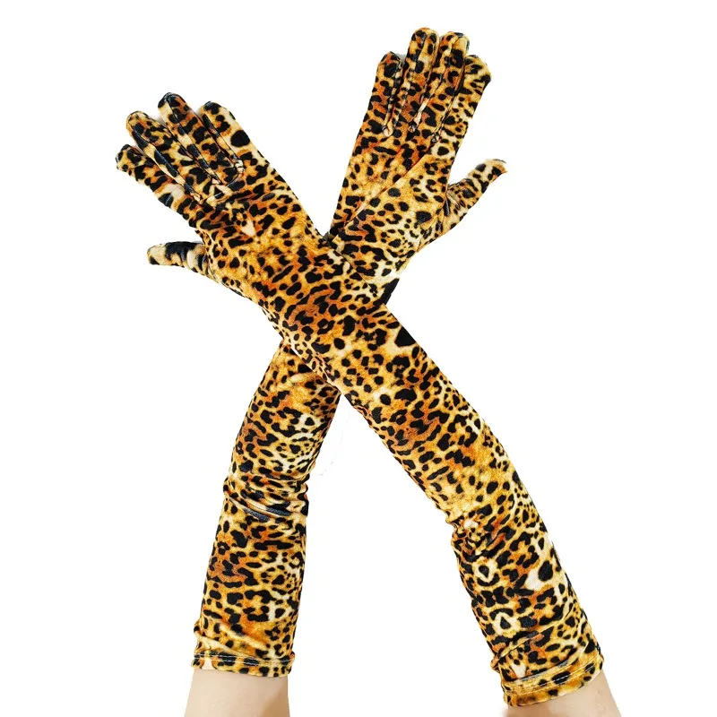 53cm Women Winter Keep Warm Gold Velvet Leopard Zebra Print Long Gloves Fashion Elegant Opera Stage Performance