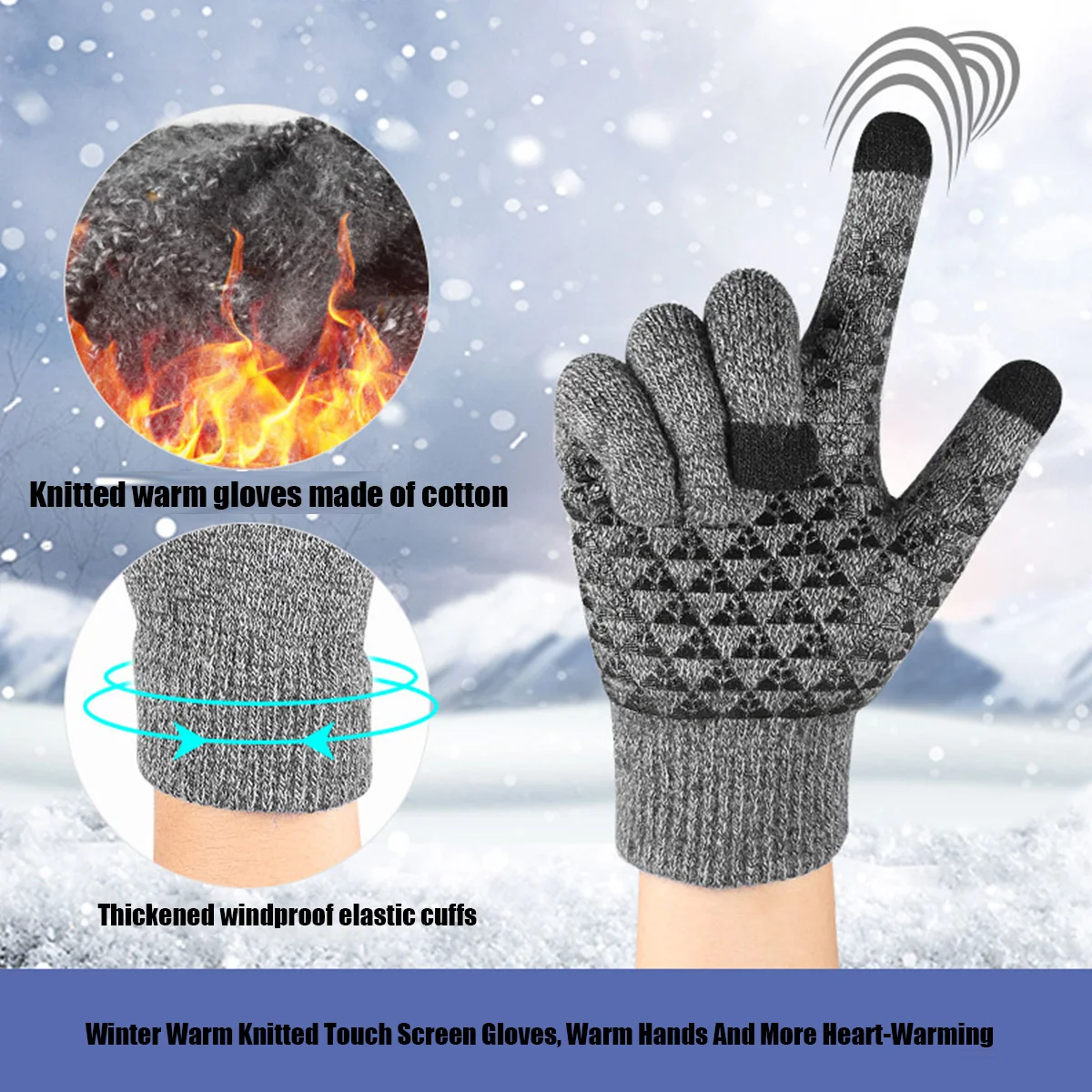 Winter warm gloves cute winter knitted ladies plus velvet cycling windproof knitted touch screen gloves  Read more