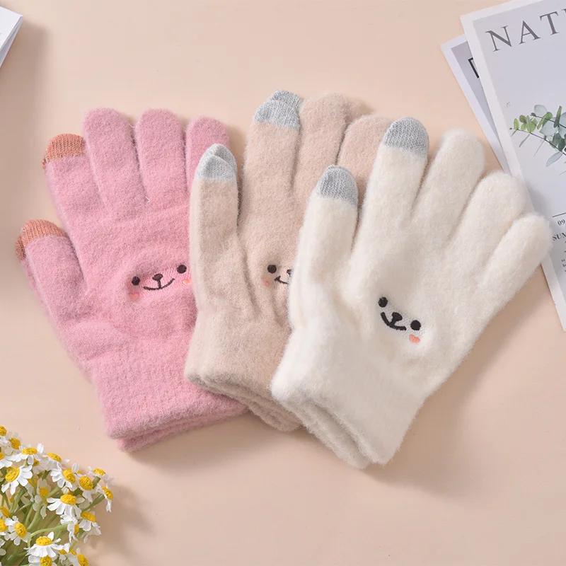 Cartoon smiley face gloves, Korean version, sweet and cute girl, winter cold resistant with thick velvet, student gloves, gloves