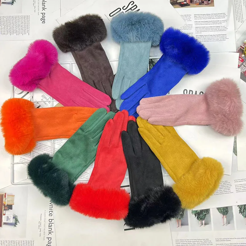 〔CC55〕1 Pair Suede Gloves For Women Winter Velvet Gloves Elegant Touch Screen Gloves For Riding Driving Keep Warm Outdoor