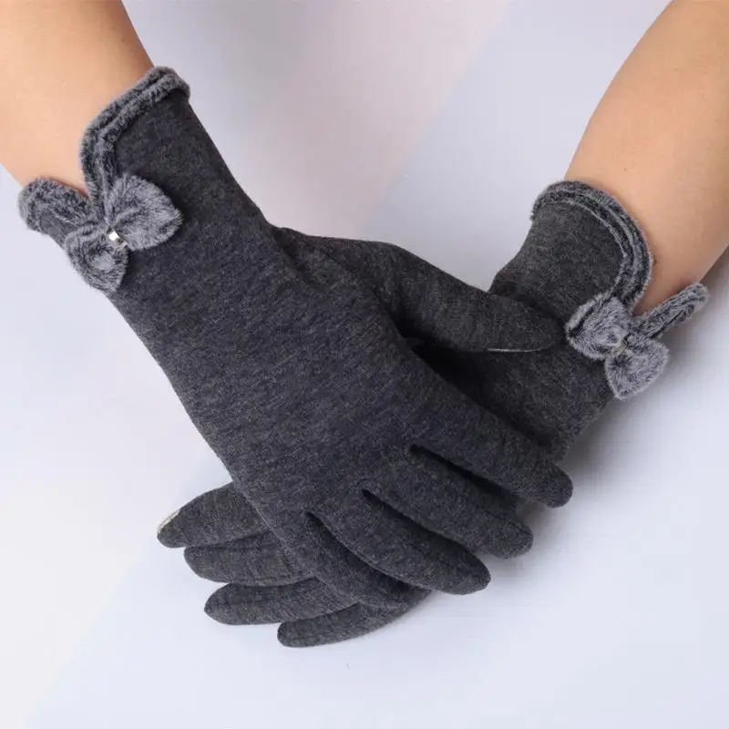 A Pair of Elegant Plus Velvet Touch Screen Ladies Gloves Knitted Plus Velvet Warm Comfort Gloves