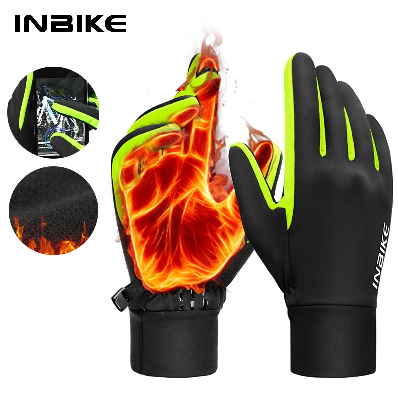INBIKE Winter Gloves for Men Women Thermal Fleece Cycling Gloves Full Finger Touchscreen Anti-Shock Road Mountain Bicycle Gloves