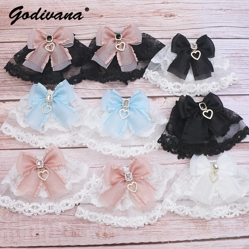 Handmade Lolita Mine Sweet Lace Bow Oversleeves Female Girls Summer Rhinestone Bowknot Gloves Mittens