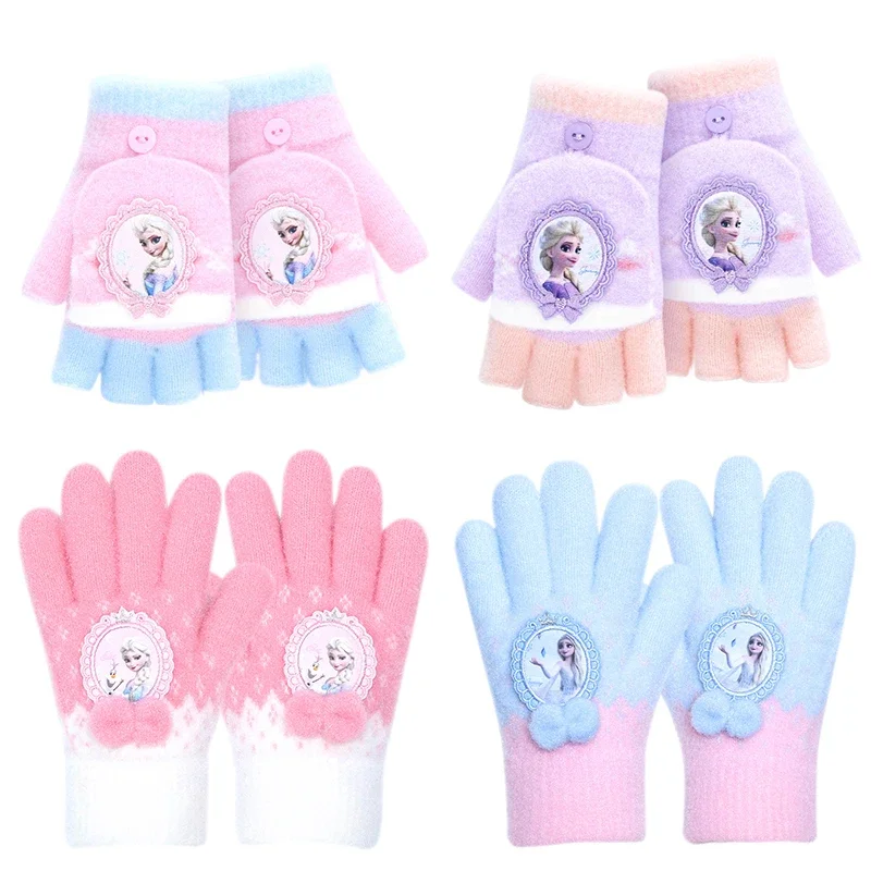 Disney Frozen Series Glove Children Cute Cartoon Princess Elsa Gloves Girl Keep Warm Knit Glove Women Birthday Winter Party Gift