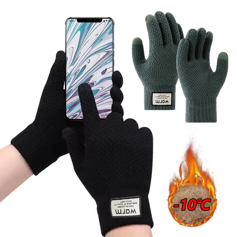 Winter Thick Knitted Warm Gloves for Men and Women Touch Screen Full Finger Gloves Lined Velvet for Cycling Sports Accessories