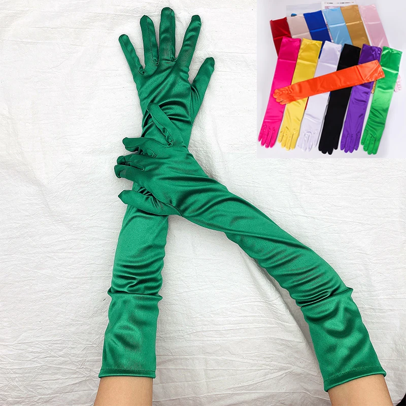 Classic Adult 21 Colors Elbow Stretch Satin Finger 38 cm Long Gloves Women Flapper Gloves Matching Costume  Read more