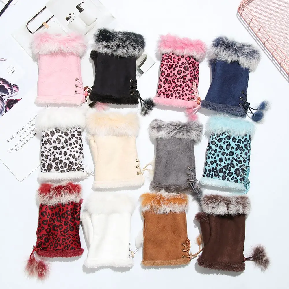 1 Pair New Fashion Faux Rabbit Hair Gloves Suede Leather Fingerless Soft Stretch Gloves Women Girls Winter Thicken Warm Mittens