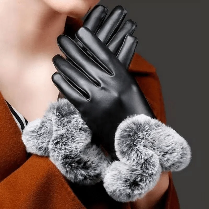 Fashion Winter Gloves Women Black Waterproof Faux PU Leather Cashmere Warm Gloves Driving Mittens Touch Screen Gloves