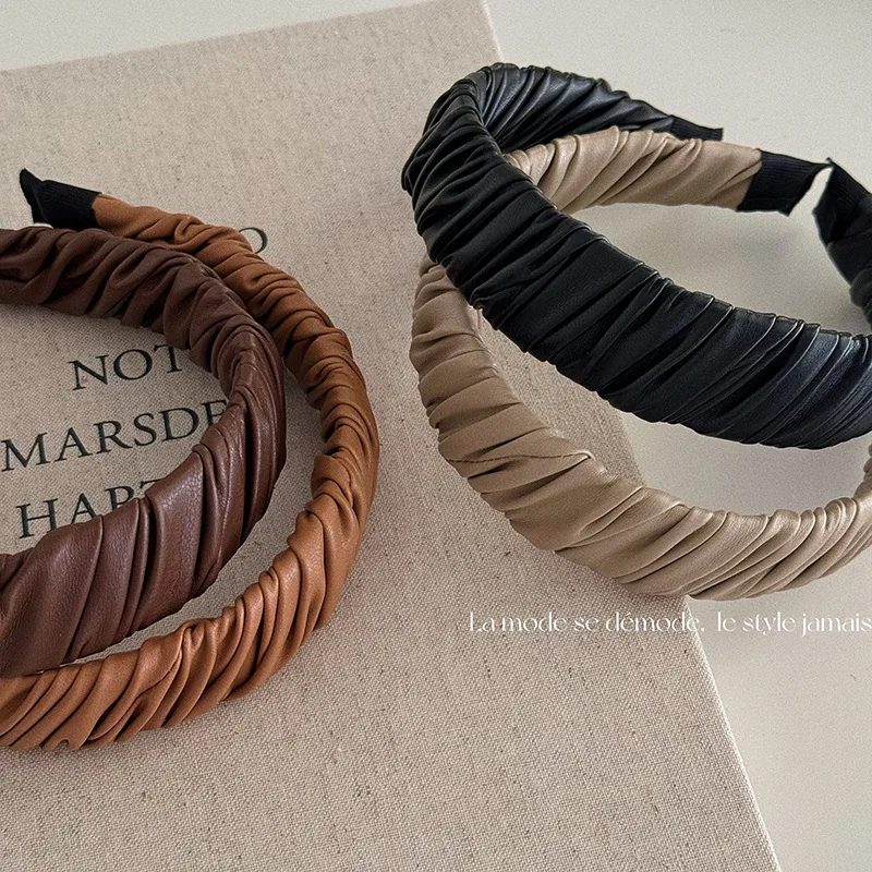 French Style Wide-Brimmed Elegant Leather Pleated High Skull Top hairhoop New High-Grade Autumn and Winter Headband for Women  Read more