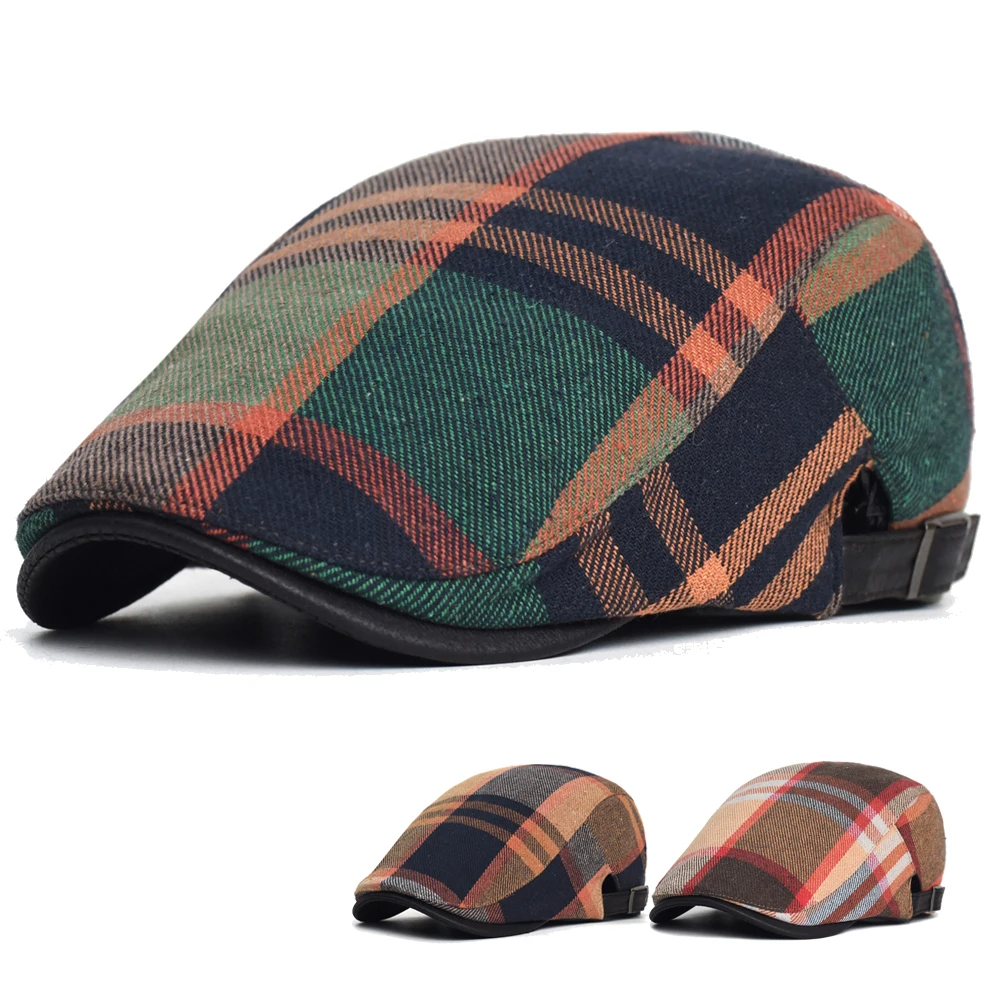 Plaid Newsboy Cap Men Women Four Seasons Vintage Casual Stripe Berets Gatsby Flat Hat Peaked Cap Adjustable  Read more