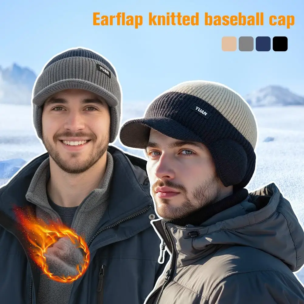 Winter Thermal Knitted Baseball Cap Thickened Ear Protection Warm Hat Windproof Men Women Outdoor Sports Running Hiking Beanie