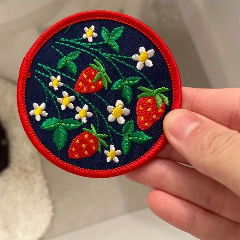1PC Sweet Strawberry Floral Embroidered Patch Iron On Cute Fruit Nature Badge DIY Gift For Clothes Cap Bag Jacket Trucker Hat
