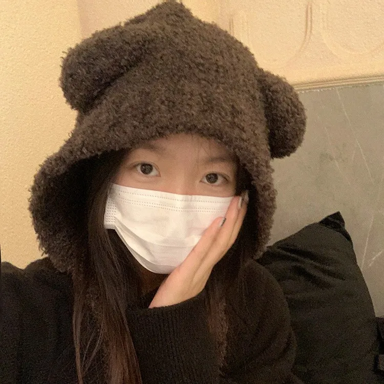 Women's new winter style autumn and winter cute tether bear versatile warm wool hat ear protection knit hat