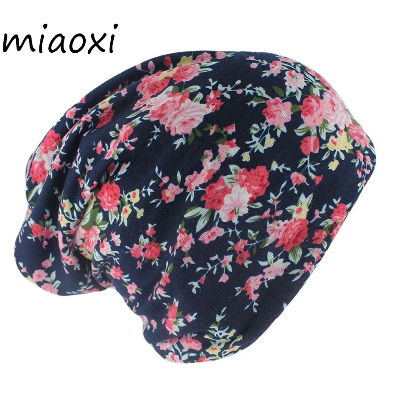 New Fashion Women Dual-use Hat Floral Casual Beanies Skullies Beauty Adult Cotton Girls Caps For Female Autumn Bonnet  Read more