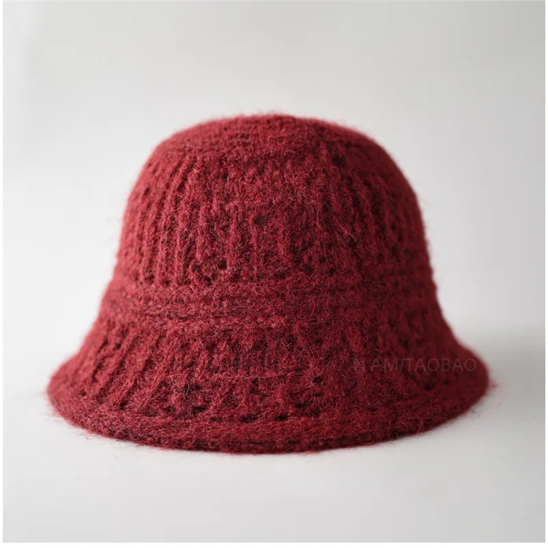 New Winter Hollow Knitted Bucket Hat Women's Fashion Simple Casual Versatile Face Small Wool Pullover Basin Hat