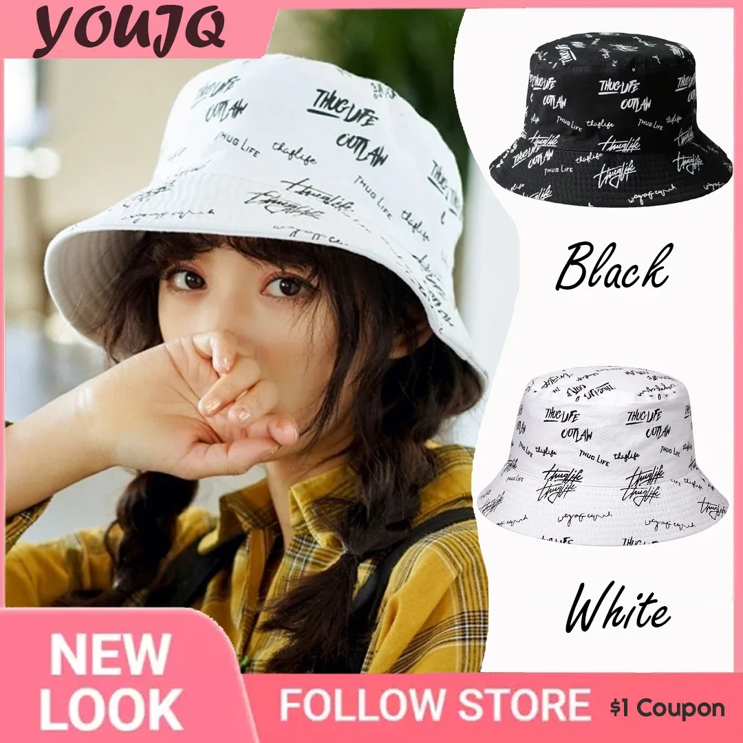 Double-sided Wear Bucket Hats for Men Women Japanese Graffiti Letter Outdoor Sun Caps Unisex Wide Brim Foldable Fisherman Gorrs