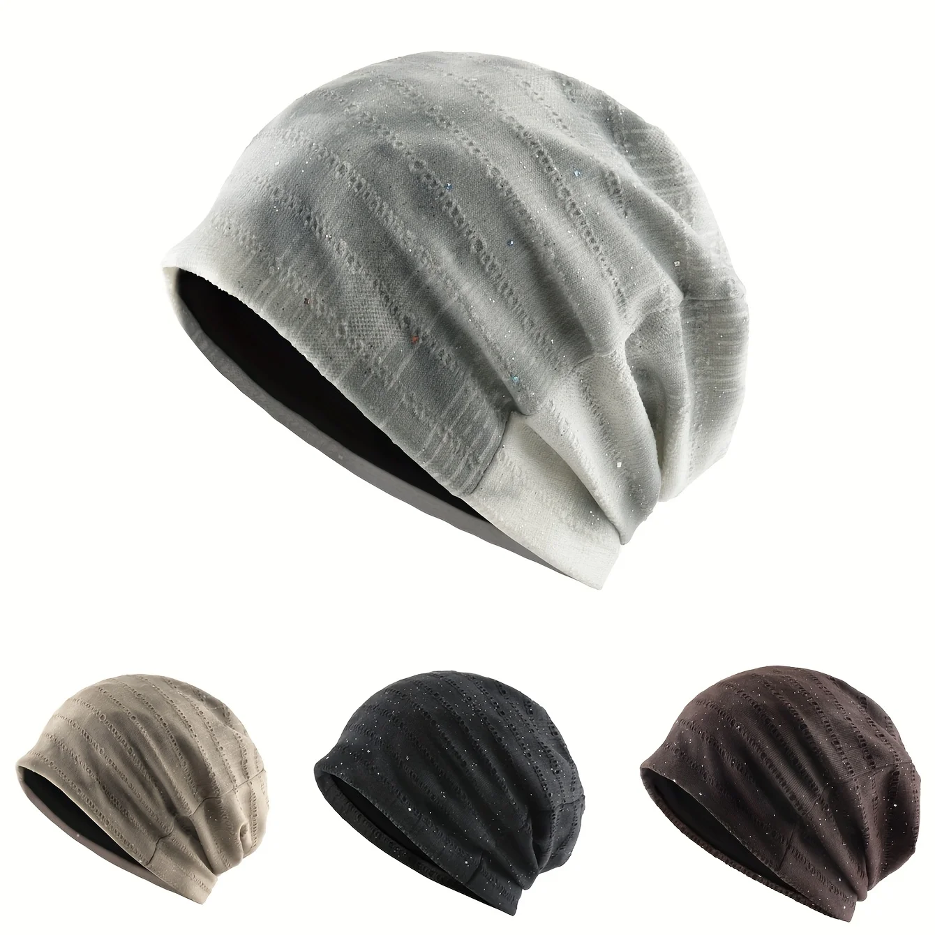 Lightweight Stackable Beanie Hat Women Vintage Distressed Knit Bonnet With Silver Splatter Print Autumn Winter Skullies Beanie