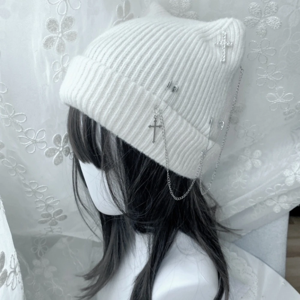 Gothic Knitted beanies Y2K Hat for Women Cat Ear Hat Handmade Crochet Skull Hat Female Teens Subculture Headwear accessoires