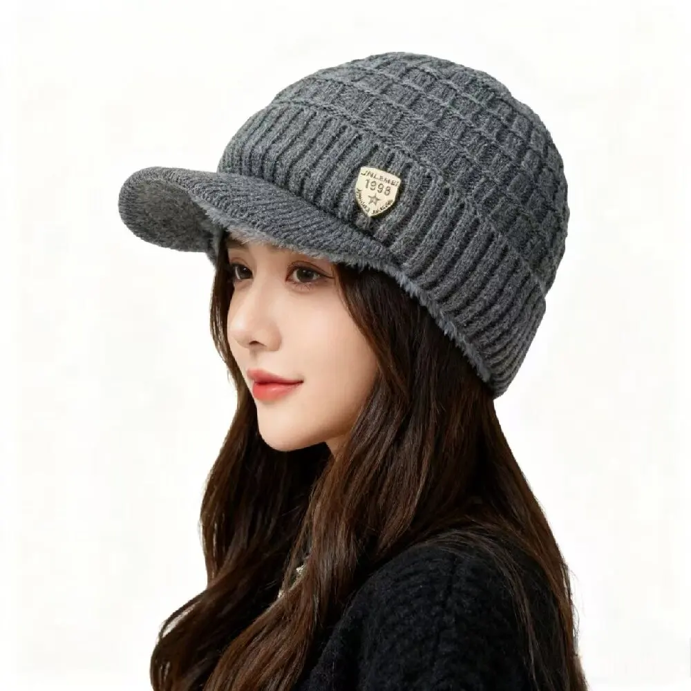 Unisex Warm Winter Hats Stylish Add Fur Lined Soft Beanie Cap With Brim Thick Winter Knitted Hats For Men & Women Dropshipping