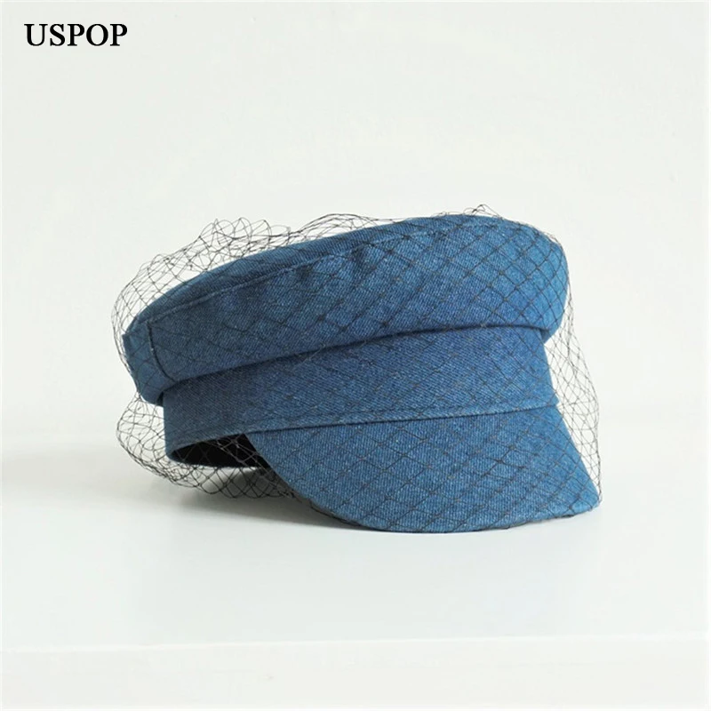 USPOP Brand Designer Fashion Autumn Winter Caps Women Mesh Yarn Newsboy Caps Flat Denim Caps