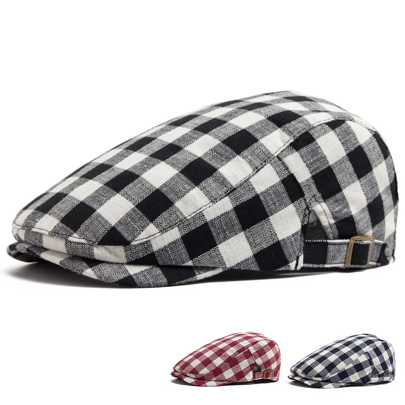 New Fashion Plaid Beret Men Women Vintage Visor Flat Cap Spring Autumn Newsboy Hat Casual Female Berets Boina Adjustable