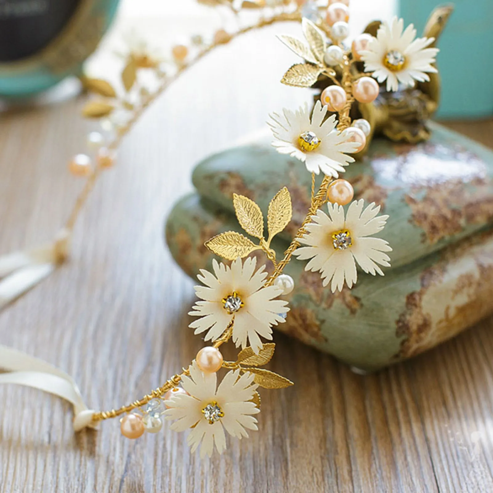 Light Luxury Crystal Headband Little Fresh Daisy Button Bead Hair Strap For Women Girls Travel Shopping Elegant Complex Hairpin