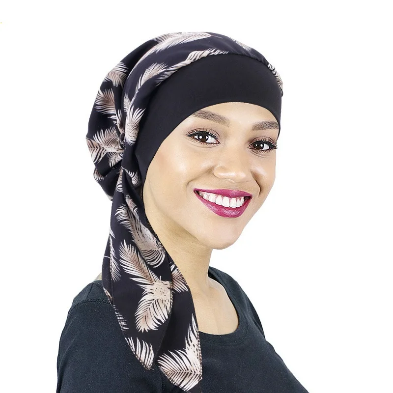 New Womens Pre-Tied Turban Cap Muslim Hijab Cancer Chemo Flower Print Hat Cover Hair Loss Head Scarf Wrap Strech Bandana