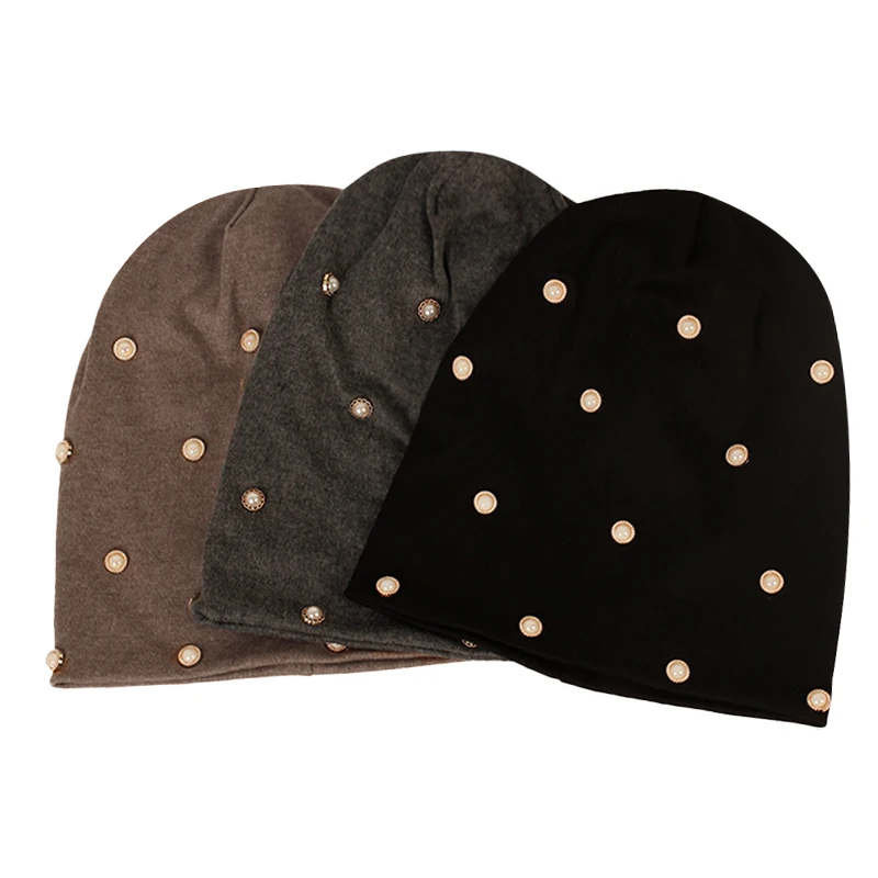 Women Pearl Cotton Casual Beanies hat Spring Autumn New Knit Slouch hat for Ladies Fashion Baggy Outdoor Gorras Hats