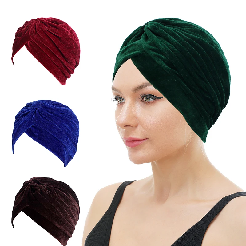 Women Velvet Cross Twist Turban Hat Headband Muslim Hijab Caps Female Hijab Underscarf Caps Hijabs Head Wrap Hair Accessories