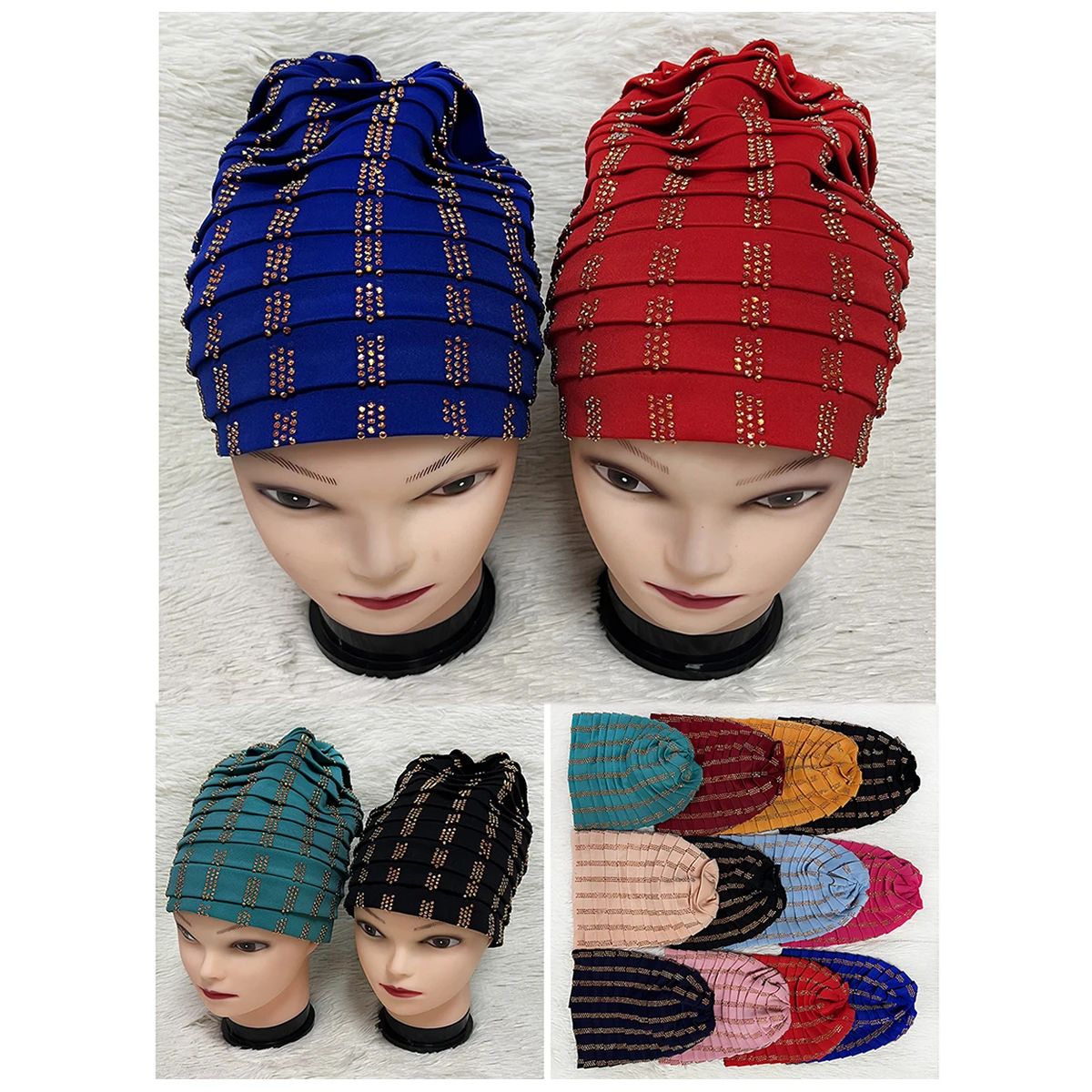 6/12 Pcs Wholesale Fashion Muslim Female Turban Hat Bonnet Velvet Hot Rhinestone Solid Indian Beanie Hair Bonnets Cap For Women